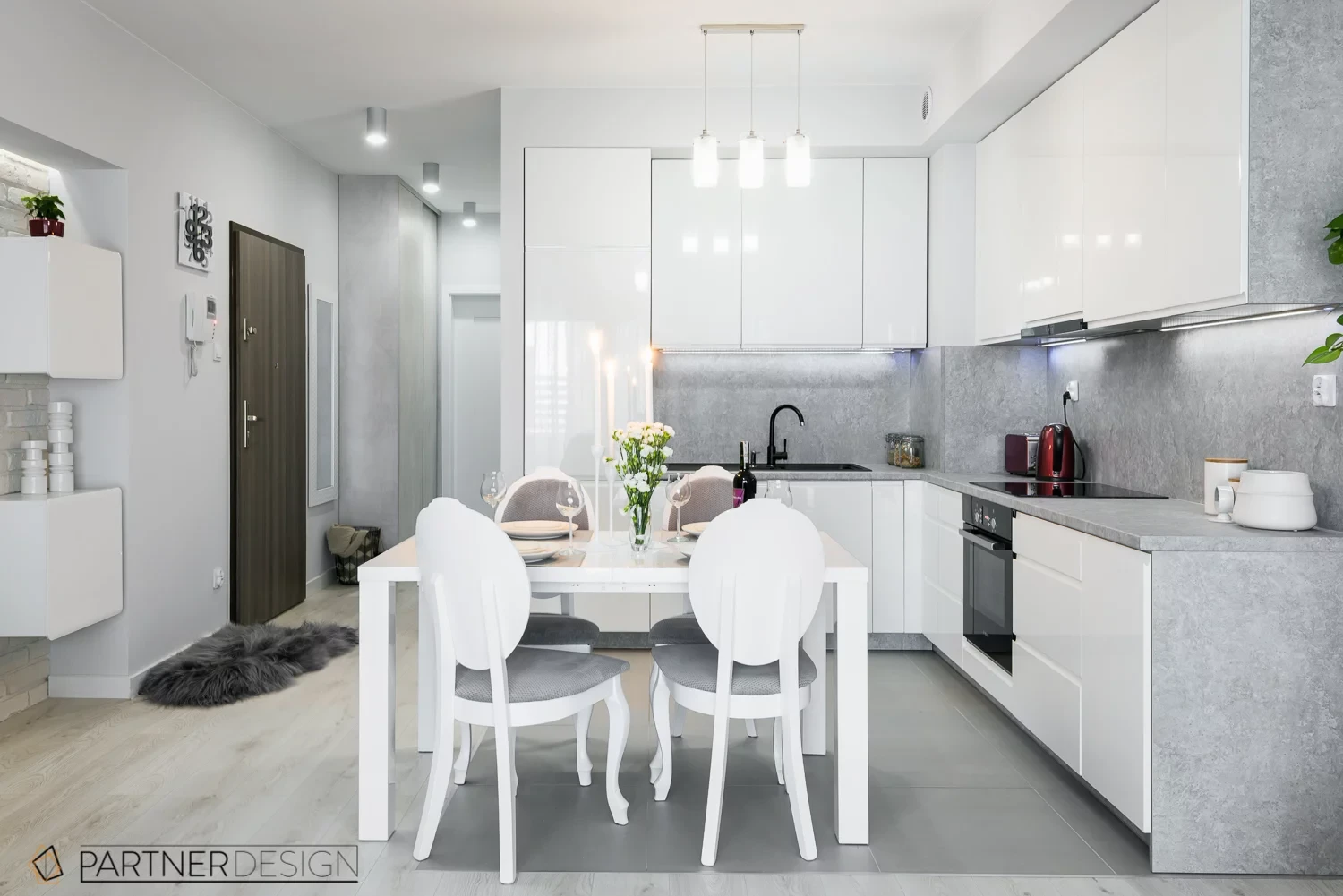 Kuchnia lub aneks to też pole do aranżacyjnego popisu – postaraj się zabudować w nich każdy kąt. Potrzebny ci stolik niech się składa. Otwarte półki to zły pomysł, dobry – wiszące szafki, zabudowane do sufitu. Przy kuchni otwartej na salon tył wyspy, półwyspu, tj. bok od strony pokoju, wykorzystaj na postawienie stolika, szafki czy telewizora.