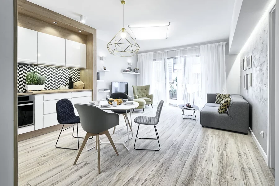 Postaw na nią oraz na dodatki w chłodnych, pastelowych kolorach, takich jak, jasny niebieski i miętowy, musztardowy, pudrowy róż i gołębia szarość. Wnętrze stanie się dzięki temu bardzo jasne. W ten sposób Skandynawowie od dziesiątek lat radzą sobie z małą ilością docierającego do nich w ciągu roku światła. Jasne kolory stylu skandynawskiego będą również najlepszą opcją w sytuacji, gdy urządzasz kawalerkę lub gdy stwierdzisz, że Twoje nowe mieszkanie 1-pokojowe mogłoby być trochę większe. Jasne wnętrza wydają się bowiem bardziej przestronne niż są w rzeczywistości.