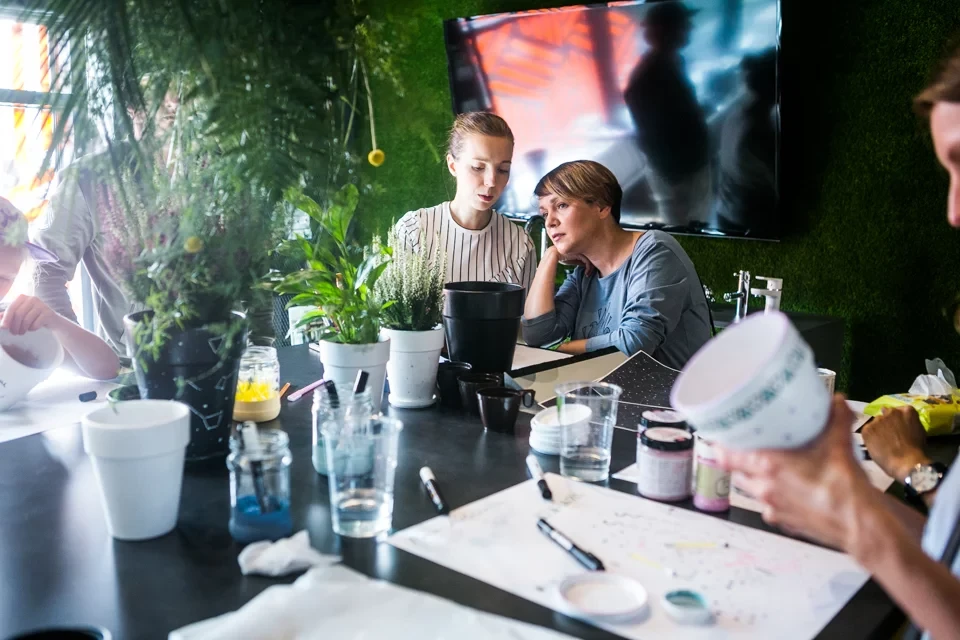 Detale – na ten element zwracali uwagę wszyscy nasi Goście i rozmówcy. Dlatego też nie mogliśmy zacząć od innego elementu. Wazon, dywan, doniczka, lampa – to te elementy tworzą nastój, klimat i są składową stylu naszego wnętrza. Właśnie na doniczkach skupiliśmy się o poranku, zapraszając Was na warsztaty Do It Yourself, poprowadzone przez Weronikę Boruń ze znanego bloga mavelo.pl. Działo się, prawie 20 z Was bawiło się razem przy wspólnym stole dekorując i kolorując gliniane donice.
