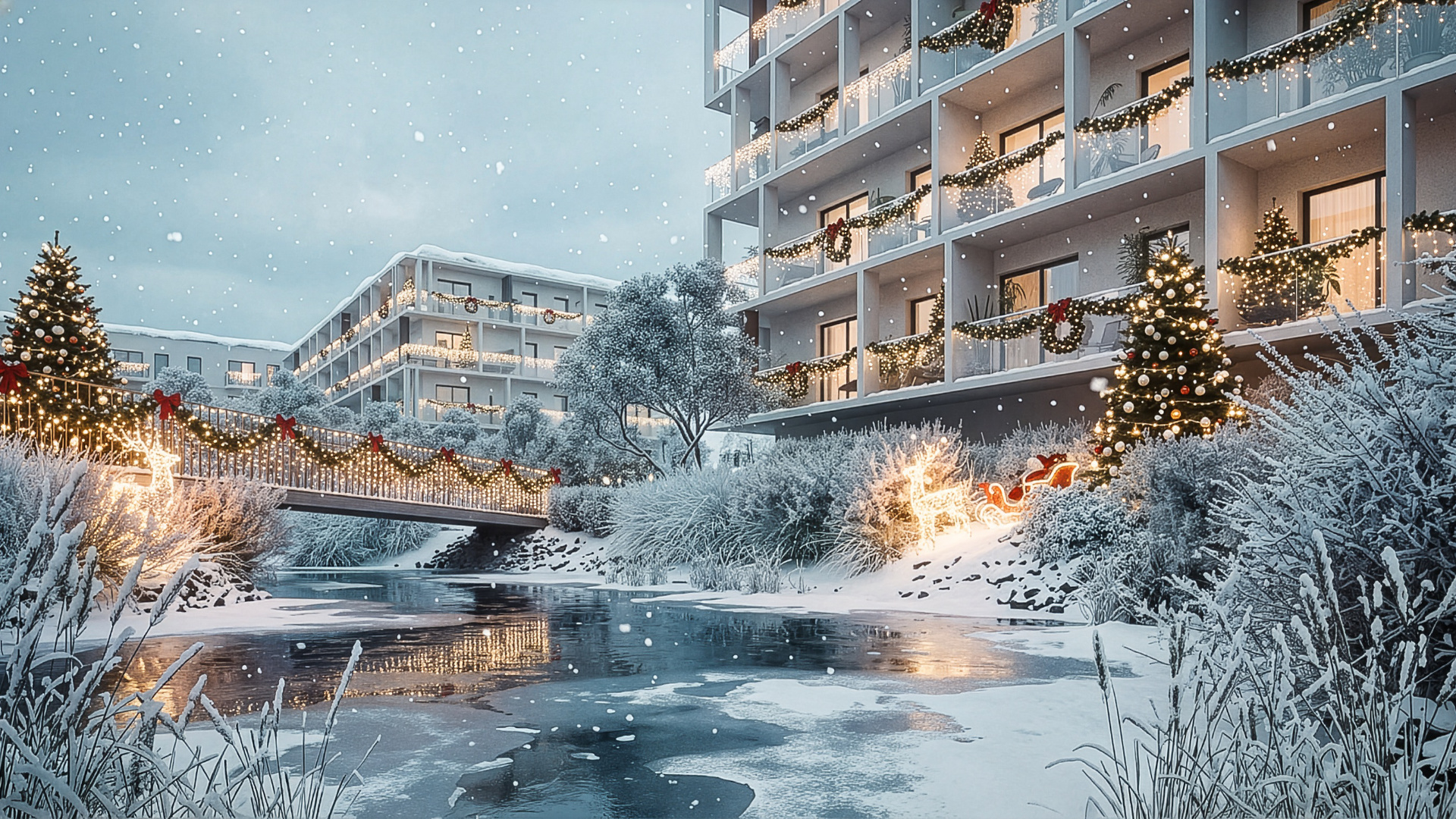 - Dobrze wkomponowana zieleń i estetyczna mała architektura. Różnorodne nasadzenia, kameralne oczko wodne i efektownie oświetlona kładka zapewnią przestrzeń do wspólnego spędzania wolnego czasu o każdej porze roku.